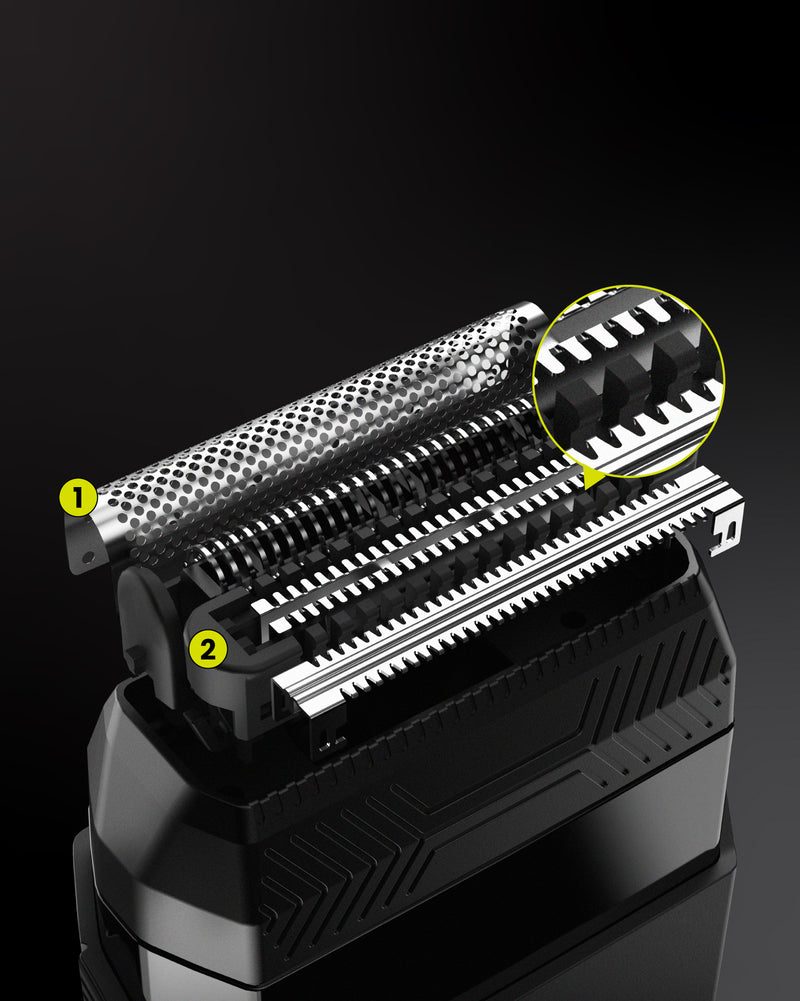 Our Dual-Action Blade Head trims short and shaves clean in one motion.